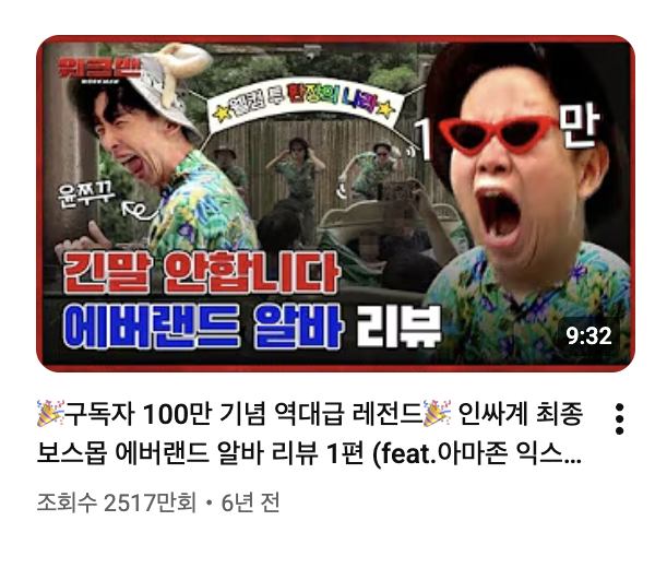 최근 인기 채널들의 방향성은 '순수함'과 '예측 불가'인데요. 말 한 마디가 계산 없이 나오는데도 그 말들이 신선하고 재미있어서 순수 재미로 인기를 끌어버립니다. 간만에 다시봐도 역시 웃기네요...